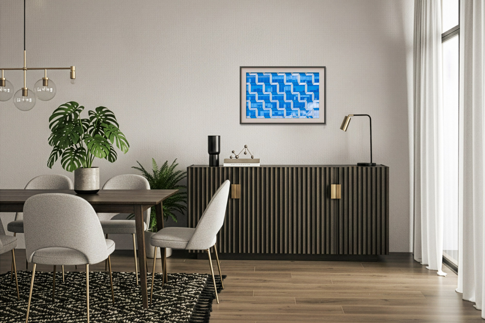 Kinetic Illusions is the rational, structural counterpart to the raw, Pollock-inspired emotions of my Painting with Light series. Where Pollock sought catharsis in fluid motion, this collection finds its pulse in the calculated, vibrant geometry of Op Art. Inspired by the rhythmic precision of Victor Vasarely, these works deconstruct the built environment into a high-energy dialogue of color and form. This is not a study of static buildings, but of the Machine in motion—an exploration of the intense, prismatic energy that flows through the structural grids of our modern world.