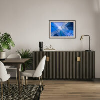 Each Metal print is made of an aluminum panel is 1/16″ thick with a white base coating to ensure accurate color reproduction. Prints are mounted with a ¾” aluminum float frame and a French cleat for secure, ready-to-hang display.