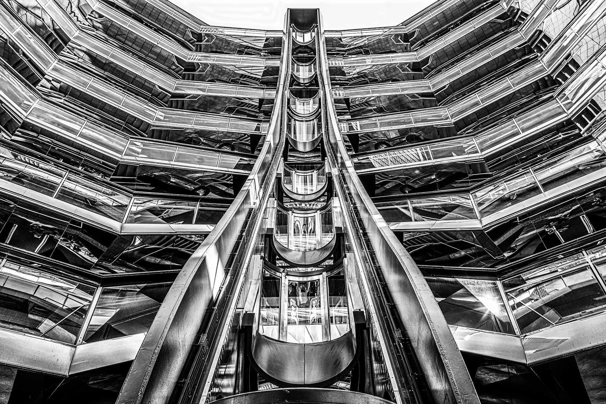For J. L. Borges, the labyrinth was a metaphor for infinity, for choices, and for time itself. My new series, “The Escherian Labyrinths,” explores these same themes through the lens of architecture. Stripped of color, the staircases of The Vessel lose their utilitarian function and become a visual riddle. Like an Escher drawing or a Borges short story, the structure loops back on itself, trapping light in a cycle of repetition. These images are an invitation to get lost, not in a physical space, but in a geometry that challenges your perception of reality.