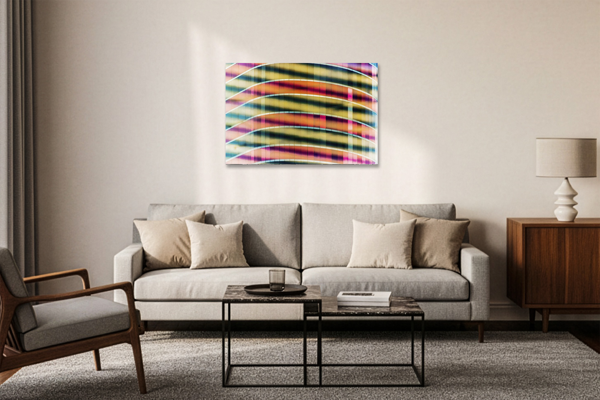 Kinetic Illusions is the rational, structural counterpart to the raw, Pollock-inspired emotions of my Painting with Light series. Where Pollock sought catharsis in fluid motion, this collection finds its pulse in the calculated, vibrant geometry of Op Art. Inspired by the rhythmic precision of Victor Vasarely, these works deconstruct the built environment into a high-energy dialogue of color and form. This is not a study of static buildings, but of the Machine in motion—an exploration of the intense, prismatic energy that flows through the structural grids of our modern world.