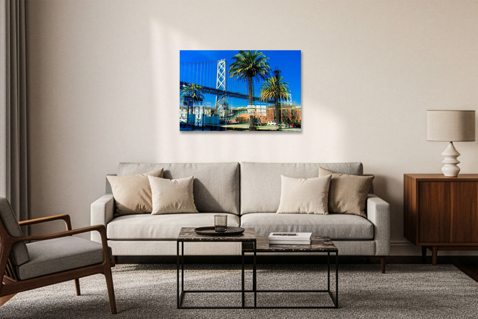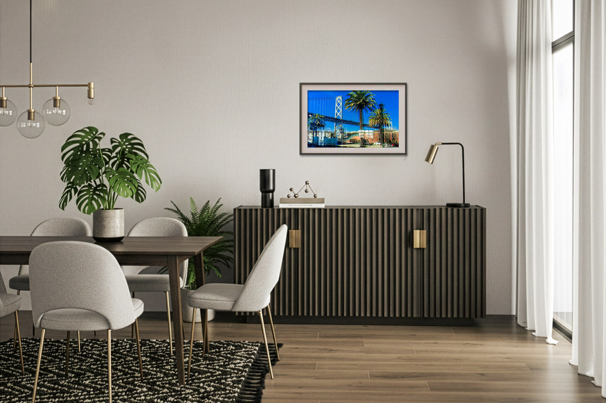 Each Fujiflex print is face-mounted to  1/4″ or 1/8″ Non-Glare Acrylic Face using an optically clear archival adhesive, then backed with a rigid DiBond panel. A Roma float mount system is affixed to the back, providing a sleek, ready-to-hang presentation using a French cleat.